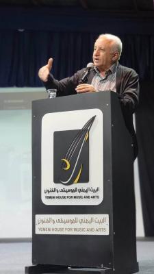 المايسترو فؤاد علي الشرجبي ربيب هذا المكان الضوء هو الآخر أشجانا بكلمة الفخور بما أنجزه هذا البيت بيتنا كلنا وملجأنا حين نصاب بالاكتئاب وقرف الحرب